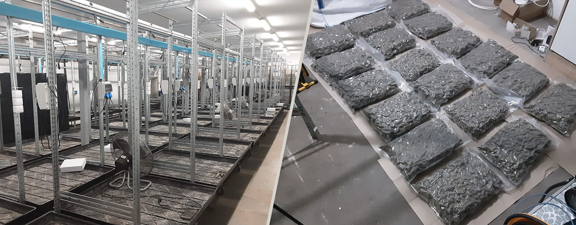 A részletes nyomozati és kiterjedt elemző tevékenység eredményeképpen a nyomozók beazonosították a lefoglalt kábítószerek beszerzési forrását, egy kecskeméti zártkerti ingatlant, amely egy 2020-ban épült, könnyűszerkezetes csarnoképület. Az épületben kétszintes, professzionálisan felszerelt, számítógépes rendszer útján távvezérelhető, több ezer marihuánanövény termesztésére és feldolgozására szolgáló infrastruktúrát alakítottak ki, amelyet rendőri akció keretében 2021. május 21-én számoltak fel az NNI debreceni nyomozói a Készenléti Rendőrség műveleti egységeinek bevonásával.