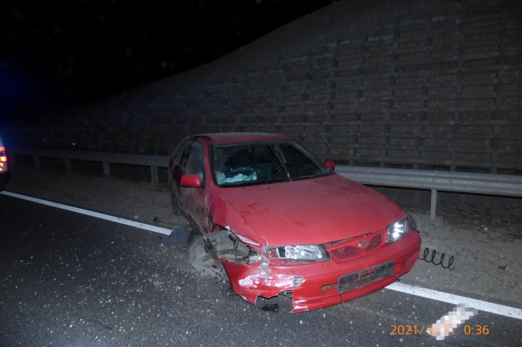 Ismerőse autójával közlekedett egy 30 éves Nógrád megyei férfi a 8-as számú főúton Hajmáskér felől Várpalota felé 2021. június 10-én 23 óra 45 perckor, mikor haladása során a járművel jobbra letért az úttestről és a szalagkorlátnak ütközött. A baleset következtében a sofőr könnyű sérülést szenvedett, valamint a járműben anyagi kár keletkezett. A helyszínre érkező rendőrök a férfival szemben alkoholszondás vizsgálatot végeztek, amely pozitív eredménnyel zárult, majd a sofőrt további mintavétel céljából előállították. Az eljárás során a rendőrök megállapították azt is, hogy a férfi nem rendelkezik érvényes vezetői engedéllyel, valamint ismerőse gépkocsiját annak tudta és beleegyezése nélkül használta. A sofőrt őrizetbe vették és a Veszprém Megyei Rendőr-főkapitányság fogdájába szállították. Ellene jármű önkényes elvétele bűntett elkövetésének megalapozott gyanúja miatt folyik büntetőeljárás, az engedély nélküli vezetés miatt pedig szabálysértési feljelentéssel éltek a rendőrök.