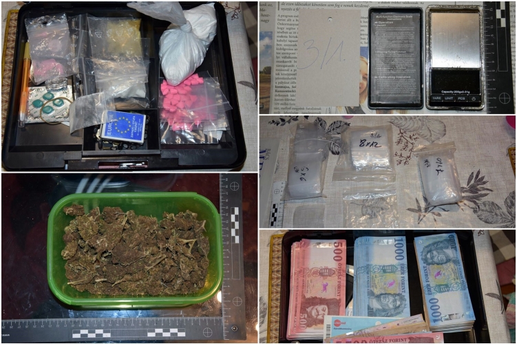 A férfi házában tartott kutatás eredményeként bruttó 665,63 gramm kábítószergyanús növényi származékot, bruttó 218,78 gramm fehér port, bruttó 27,48 gramm kristályos anyagot, 68 darab tablettát, valamint egyéb ismeretlen eredetű anyagokat találtak a rendőrök. A kábítószeren kívül az adagoláshoz szükséges eszközöket, valamint közel 800.000 forint készpénzt is lefoglaltak a nyomozók az eljárás során.