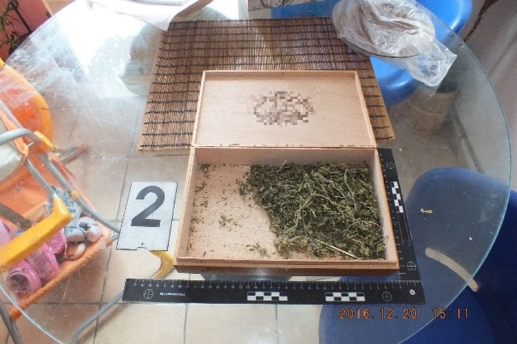 A férfi mátraszőlősi családi házában 2016. december 20-án megtartott házkutatáson a rendőrök egy nagyméretű fa dobozban, valamint több önzáró nejlontasakban, összesen 356,49 gramm tömegű barnás színű, kábítószergyanús növényi törmeléket találtak meg és foglaltak le. A nyomozás során beszerzett szakértői vélemény alapján a lefoglalt növényi törmelék kábítószernek minősül.