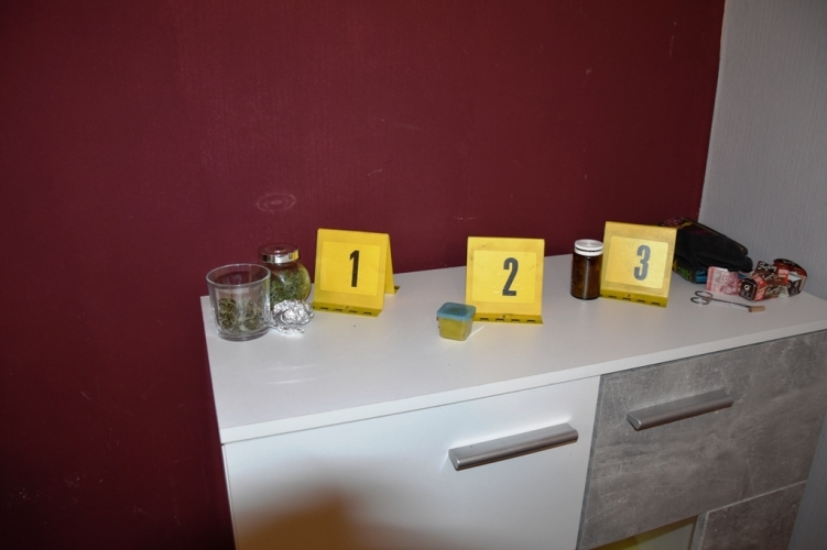 Állampolgári bejelentés alapján jelentek meg a rendőrök 2020. december 3-án 20 óra 15 perc körül egy gyöngyösi lakásnál, ahol különböző helyeken kábítószergyanús fehér port és zöld növényi törmeléket találtak, majd foglaltak le.