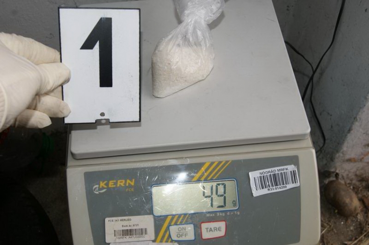 A Nógrád Megyei Rendőr-főkapitányság Felderítő Osztályának munkatársai és a Salgótarjáni Rendőrkapitányság Bűnügyi Osztályának nyomozói 2014. március 5-én Salgótarjánban házkutatást tartottak B. Antal használatában lévő garázsban, ahol a gépkocsi ülésén közel 50 gramm fehér színű kristályos anyagot, továbbá a garázsban közel 700 gramm zöld növényi törmeléket, valamint digitális mérleget foglaltak le. A lakásban megtartott házkutatás során közel fél millió forintot foglaltak le a nyomozók. A beszerzett szakértői vélemény alapján a lefoglalt kábítószergyanús anyagok új pszichoaktív anyagnak minősülő vegyületet tartalmaznak. A rendőrök a 49 éves nőt és férfit elfogták, a rendőrkapitányságra előállították és gyanúsítottként hallgatták ki.