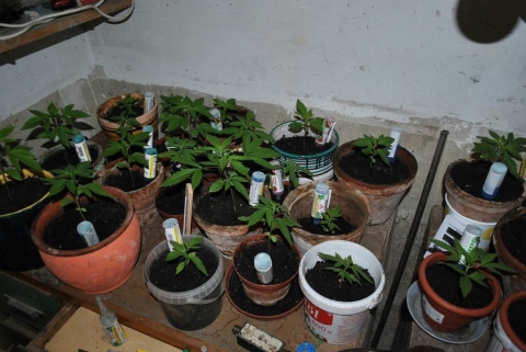 Egy veszprémi társasházi lakáshoz tartozó garázsban tartottak házkutatást a rendőrök 2016. november 9-én, ahol több mint 30 tő cserépbe ültetett - az igazságügyi botanikus szakértő előzetes szakvéleménye alapján - marihuánát és zöld növényi törmeléket találtak.