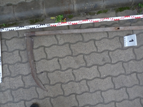 A helyszínen elfogták a rendőrök azt a férfit, aki a gyanú szerint kaszával támadt egy 40 éves helyi lakosra.
