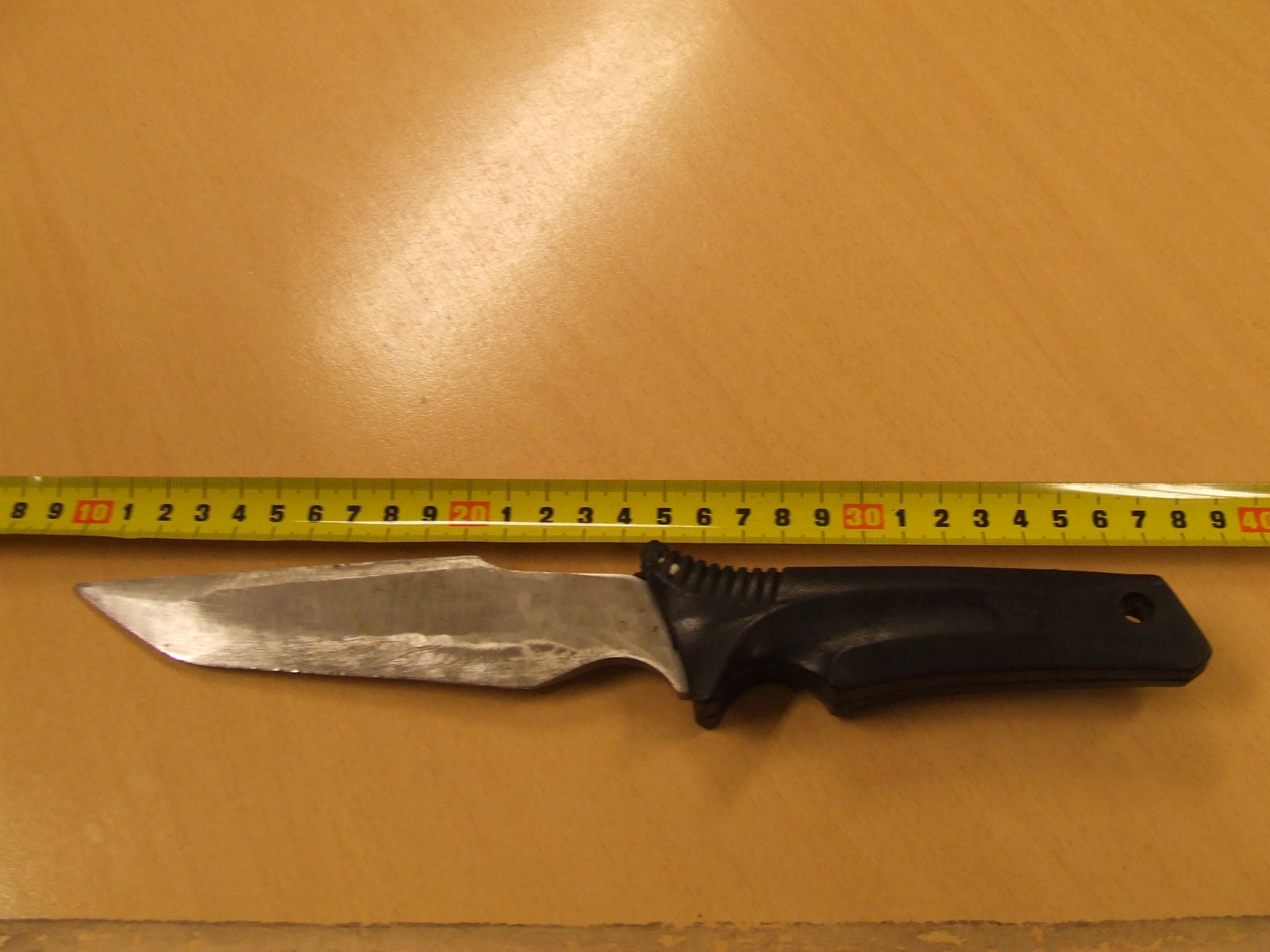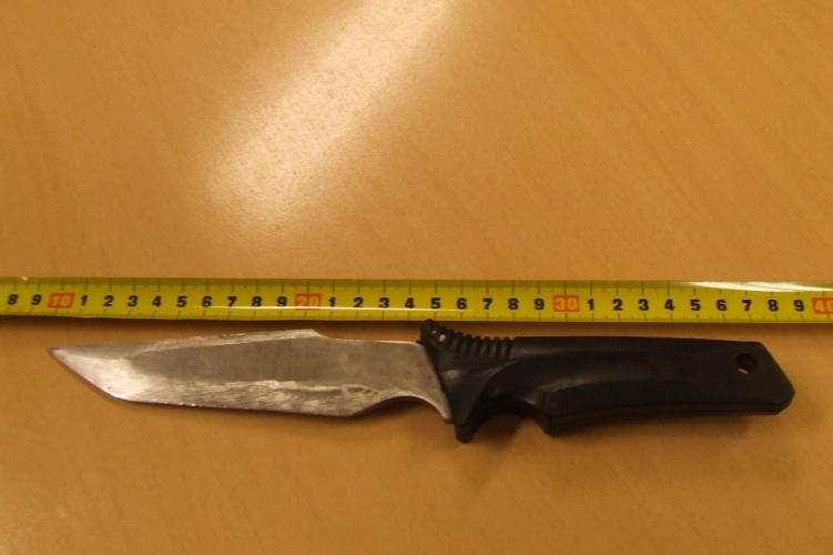 A helyszínre érkező járőrök a 16 centiméter pengehosszúságú vágóeszközt az ittas férfitől elvették, majd kezeit hátra bilincselték és előállították a rendőrkapitányságra.