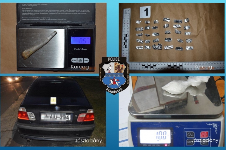Szintén kábítószergyanús anyagot találtak a rendőrök abban a kocsiban, amit január 31-én este állítottak meg Karcagon. A 23 éves férfi és szintén 23 éves utasa elismerték, hogy drogot fogyasztottak. A jobb oldali első ülésen ülő férfi ruhájában 29 db, fehér port tartalmazó alufólia pakkot, a sofőrnél egy szál cigarettapapírba töltött, zöld növényi őrleményt találtak. Mindkettejüket további mintavételre állították elő, a talált anyagokat szakértőnek küldték meg, és ellenük kábítószer birtoklása miatt indítottak eljárást.