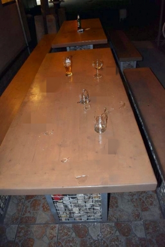 Mosonmagyaróváron egy italbolt előtt verekedett össze három férfi 2018. szeptember 20-án 21 óra 20 perckor. A helyszínre érkező járőrök megállapították, hogy a kocsma előtt két férfi között alakult ki szóváltás. A vitára felfigyelt egyikük közelben italozó két ismerőse, akik beleavatkoztak a veszekedésbe, melynek következtében dulakodás alakult ki. S. István mosonmagyaróvári lakos ekkor a kültéri kocsmai asztalról felkapott egy söröspoharat és azzal megütötte Cs. István mosonmagyaróvári lakost. A verekedők magatartása alkalmas volt arra, hogy a jelenlévőkben megbotránkozást, riadalmat keltsen, ezért őket az intézkedők elfogták, majd a Mosonmagyaróvári Rendőrkapitányságra előállították. A nyomozók mindhármukat csoportosan elkövetett garázdaság bűntett elkövetésének megalapozott gyanúja miatt gyanúsítottként hallgatták ki.