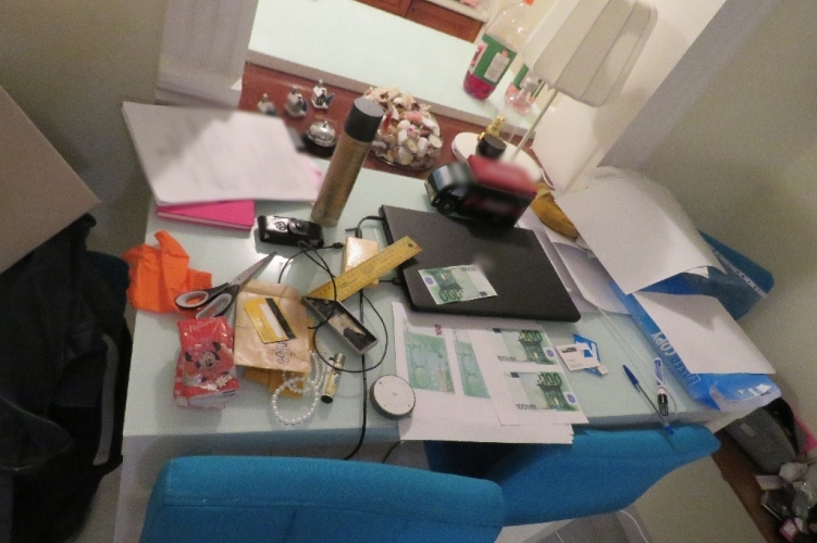 A kőbányai rendőrök a nyomozati cselekmények eredményeként 2019. december 17-én lakásukon elfogták a fiatal férfit és barátnőjét, ahol kutatást is tartottak. A kutatás során a nyomozók több száz hamis bankjegyet – hatezer eurót és 60 ezer forintot -, hamisításhoz szükséges nyomtatókat, patronokat, laptopot, papírvágó készüléket, derékszög mérésére használt fém eszközt, mobiltelefonokat, más nevére kiállított okmányokat valamint rendszámtáblát is találtak és foglaltak le. A lefoglalt bankjegyekről a szakértő megállapította, hogy azok hamisak.
