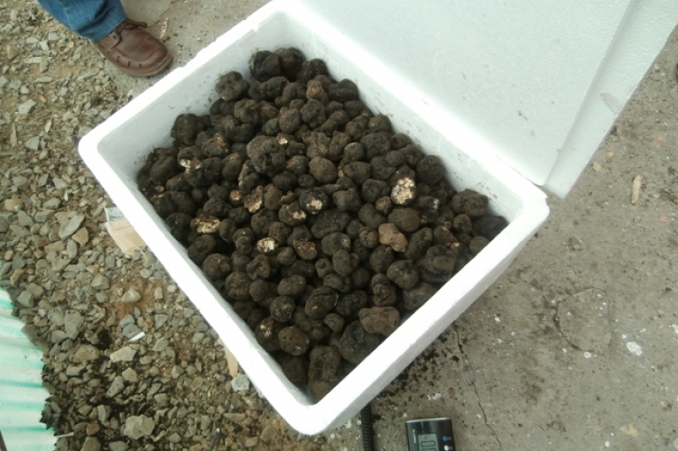 Több mint 200 kilogrammnyi szarvasgombát foglaltak le a rendőrök egy hűtőkocsiban a Jász-Nagykun-Szolnok megyei Jászladány településen 2013. június 4-én.