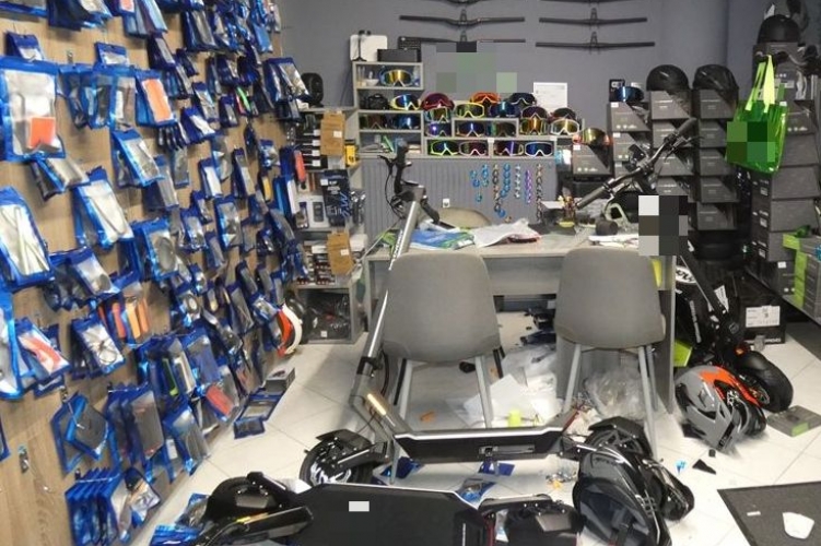 A férfi nem nyugodott, hajnalban még két másik bűncselekményt is elkövetett: volt, ahol a tetőszerkezeten keresztül hatolt be az épületbe, majd pedig egy üzlet kirakatát törte be, és sok terméket – akkumulátorokat, kiegészítőket és eszközöket – rejtett a ruhájába. Két elektromos rollert is elmozdított, egyet a törött kirakaton keresztül vitt ki, egy másikat pedig már a földszint felé tolt, azonban pechére a biztonsági szolgálat munkatársai tetten érték, és visszatartották a rendőrök kiérkezéséig.