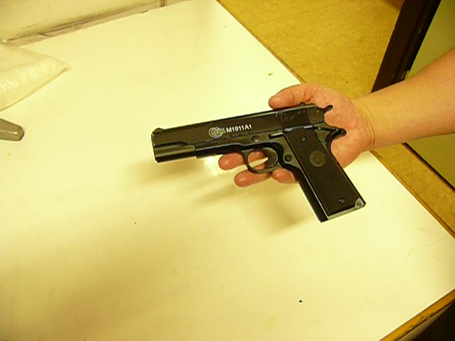 A törzsőrmester és az őrnagy erősítést kért és a kocsmához sietett. Megtudták, hogy a gyanúsított fegyverével a mellékhelyiségbe zárkózott. Mikor L. Tamás kilépett a mosdóból Lik Balázs r. törzsőrmester és Bakos Tamás r. őrnagy elfogta és elvette tőle a Parabellum lőfegyverre hasonlító eszközt. Később kiderült, hogy a férfinál egy töltetlen airsoft fegyver volt. L. Tamást az esztergomi rendőrök előállították a rendőrkapitányságra, ahol ellene – szabadlábon hagyása mellett – fegyveresen elkövetett garázdaság bűntett elkövetésének megalapozott gyanúja miatt indított eljárást az Esztergomi Rendőrkapitányság.