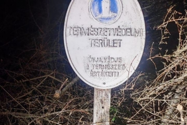 A táblával is jelzett természetvédelmi területen történt fakitermelés olyan zöldellő fűzfát is érintett, aminek vastag ágát csak félig tudta a férfi bevágni.