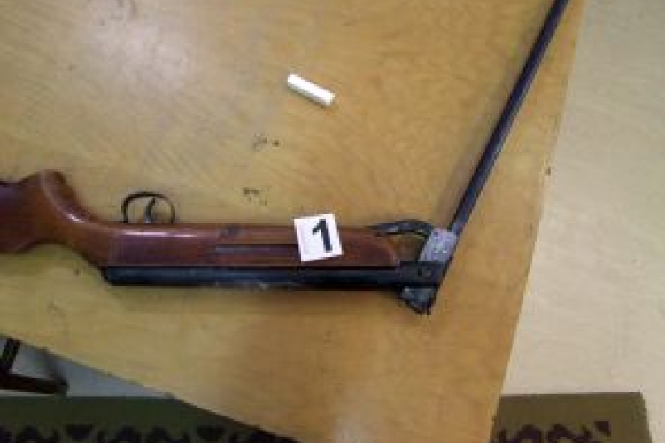 A gyanú szerint egy 20 éves fiatalember 2014. április 26-án délelőtt légpuskával szemen lőtte 74 éves szomszédját Nagykanizsán. Az idős asszony amikor észlelte a sérülést, azt hitte, hogy egy kővel dobták fejbe, azonban a zalaegerszegi kórházban az orvosok megállapították, hogy a szemgödrébe egy légpuskalövedék fúródott. A sérültet a mentő a szombathelyi kórházba vitte további ellátásra. A vizsgálatok során az is kiderült, hogy a 74 éves nő maradandó sérülést szenvedett. A nagykanizsai rendőrök a bűncselekmény feltételezett elkövetőjét elfogták és a nyomozók gyanúsítottként hallgatták ki. A 20 éves férfi a bűncselekmény elkövetését beismerte, elmondta, nem szándékosan lőtte meg az asszonyt és megbánta tettét. A Nagykanizsai Rendőrkapitányság Bűnügyi Osztálya gondatlanságból elkövetett súlyos testi sértés vétség kísérletének megalapozott gyanúja miatt indított eljárást G. Norbert ellen. A gyanúsított szabadlábon védekezhet.