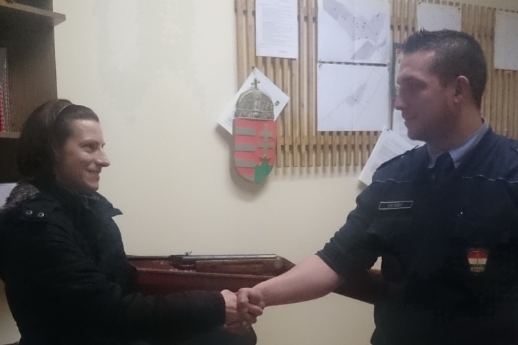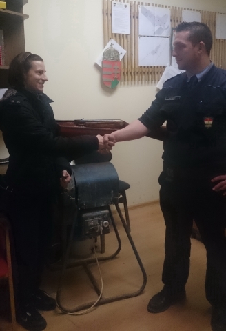 A képen a sértett és Kiss Róbert rendőr törzsőrmester láthatóak.