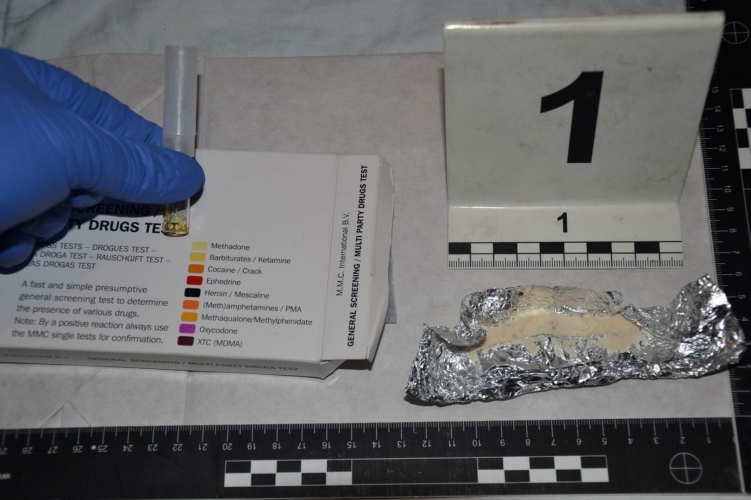 A rendőrök a gépjármű ellenőrzése és a végrehajtott kutatások során alufóliába csomagolt kábítószergyanús fehér és sárga port, valamint zöld növényi törmeléket találtak és foglaltak le. A lefoglalt poron és növényi törmeléken végrehajtott gyorsteszt kábítószerre pozitív jelzést adott. A nyomozók az eltulajdonított értékeket megtalálták és lefoglalták.
