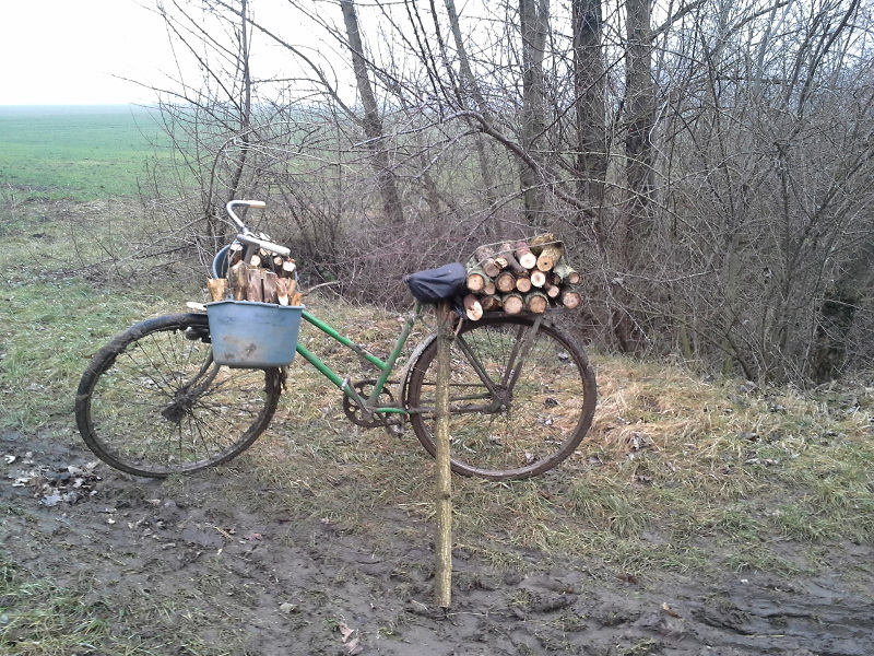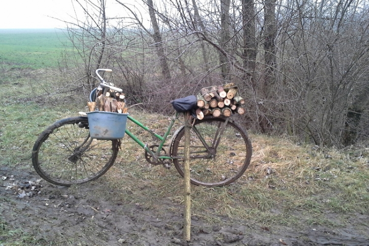 Lopott fa a kerékpáron
