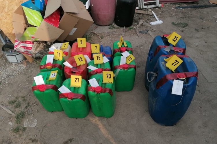 A gyanúsítottak tartózkodási helyein kutatást hajtottak végre a rendőrök, amelyek során több tucat műanyag kannát, hordókat, tartályokat, átfejtőcsövet találtak és foglaltak le.