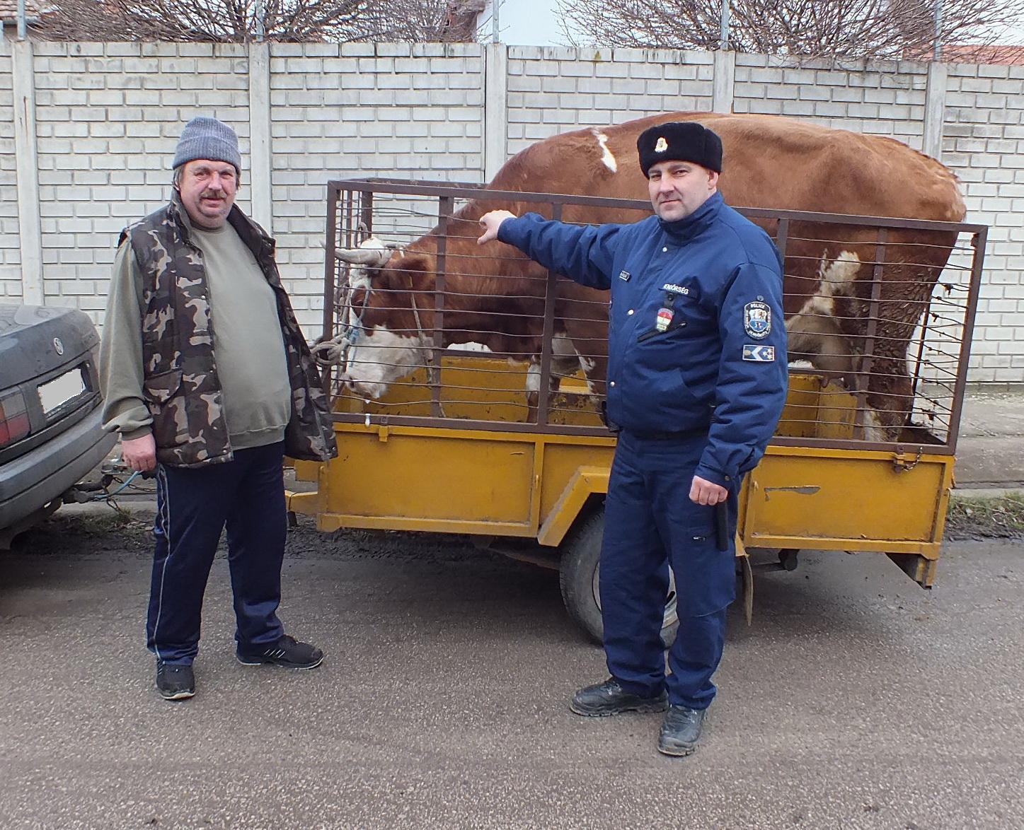 A tiszakürti körzeti megbízottak 2015. február 10-én 23 óra 20 perckor Tiszakürt-Bogaras belterületén állítottak meg és ellenőriztek egy tehergépkocsi-vezetőt és három utasát. A rendőrök az ellenőrzéskor megállapították, hogy a gépjármű vezetője, az 54 éves R. József érvényes vezetői engedéllyel nem rendelkezett. Az egyenruhások a zárt tehergépkocsi rakterében egy szarvasmarhát találtak, amelyről a férfiak azt állították, hogy az úton találták. A rendőrök perceken belül megállapították, hogy a szállított tehenet aznap este Tiszakécskén egy majorból tulajdonították el.