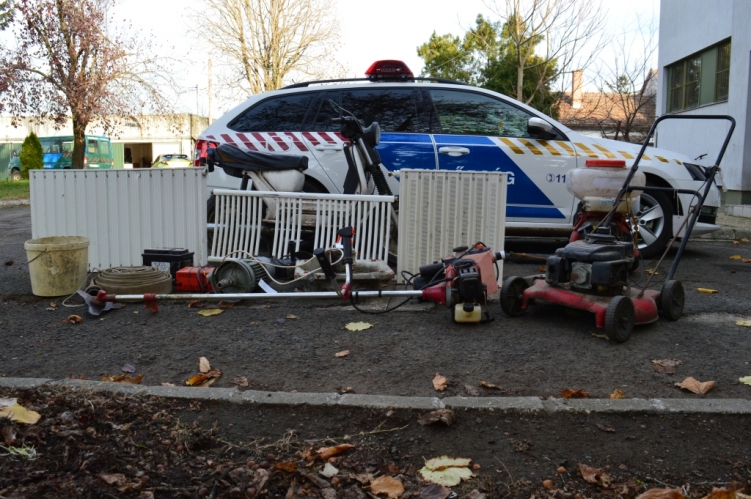 A rendőrök a 23 éves kunágotai férfit előállították, majd a társát is elfogták és mindkettőjüknél házkutatást tartottak. Azokat a dolgokat, amelyeket az autóban szállítottak, az elmúlt napokban egy battonyai házból hozták el. Többször visszamentek oda és többek között fúrógépet, sarokcsiszolót, csavarbehajtót, fűrészt, légpuskát tulajdonítottak el. A két férfi ezen kívül még több lopás elkövetésével gyanúsítható. Battonyán együtt törtek be több házba, a 22 éves battonyai férfi pedig egyedül is követett el a városban bűncselekményt. A kunágotai férfi korábban Kunágotán ment be üresen álló házakba, valamint egy alkalommal egy olyan férfitől is lopott, akinél ház körüli munkát végzett. Amit loptak, rendszerint eladták, de a nyomozók sok dolgot még megtaláltak náluk. A kisgépek, szerszámok mellett fűnyírót, segédmotor-kerékpárt, rotációs kapát is lefoglaltak tőlük.