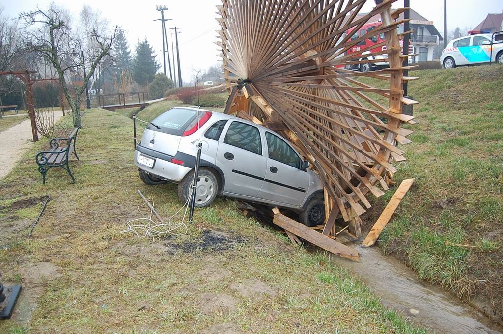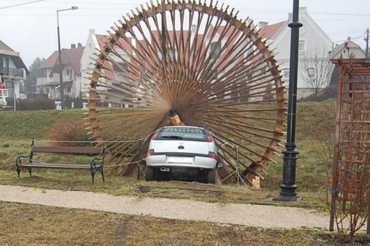 A csopaki játszótér mellett felállított malomkeréknek ment neki autójával egy férfi.
