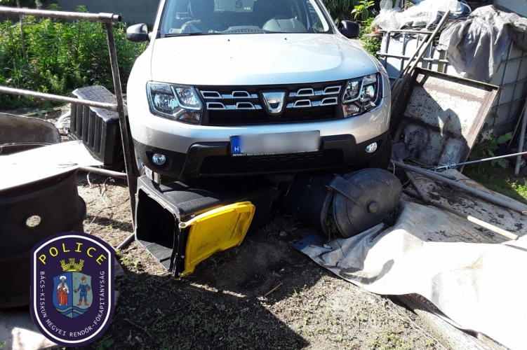 Kiskunmajsai otthonában tévézett egy 69 éves asszony idén május 10-és este, amikor egy autó felbőgő motorjának hangjára lett figyelmes. A nő az ablakhoz sietett, hogy ellenőrizze az udvarban parkoló kocsiját, azonban azt nem látta. Ijedtségében a telefonjáért sietett, hogy segítséget kérjen gyerekeitől. Végül fia értesítette a járőröket, akik pár perc elteltével ki is értek a helyszínre. Mindenki meglepetésére a kertben találták az asszony autóját, benne egy alvó férfivel, aki feltehetően a sok sikertelen tolatási kísérletben fáradt el. Ugyanis kiderült, hogy a kocsitolvaj olyan részeg volt, hogy a hosszas próbálkozás ellenére sem tudott kijutni az udvarról. A manőverezések során kidöntött egy oszlopot, áthajtott a virágos kerten, majd fel a sziklakertre, ahol több kaspót is összetört, átment egy kertigépen, végül pedig ráhajtott a kukákra, melyeken fennakadt az autó. A járműben és az udvarban is jelentős, több mint 300.000 forint kárt okozott az ügyetlen tolvaj.