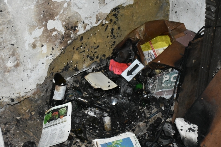 Közben a bűncselekmény helyszínére érkező járőrök észlelték, hogy füst gomolyog a házból. Az udvarban és az épületben több helyen találtak lánggal égő tüzeket, de volt, ahol már csak a korom jelezte, hogy korábban ott is tüzet gyújtottak. A katasztrófavédelem munkatársai a tüzet eloltották. A rendőrségi szemle és a tűzvizsgálat adatai szerint szándékos gyújtogatás történt. A házban több gázpalack is volt.