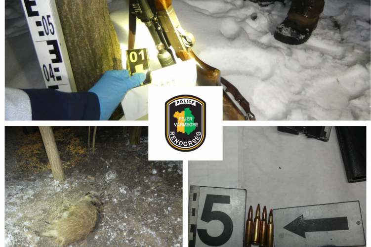 Állampolgári bejelentés érkezett a rendőrségre 2026. január 22-én kora este arról, hogy egy jármű várakozik egy erdős terület mellett és egy talpig fehérbe öltözött férfi megy be az erdőbe. A férfi, a Sárbogárdi Rendőrkapitányság egyenruhásait észlelve az erdő felé próbált meg elmenekülni, de nem járt sikerrel. Az intézkedés során az elkövetőnél hőkamerás távcsővel ellátott lőfegyvert, lőszereket és egy vaddisznó tetemét is találtak a rendőrök. Az egyenruhások a férfit elfogták, és a rendőrkapitányságra előállították, a nála tartott házkutatás során a fagyasztóládából további 19 darab fácán, 1 darab vadnyúl és több kilogramm vaddisznóhús került elő.