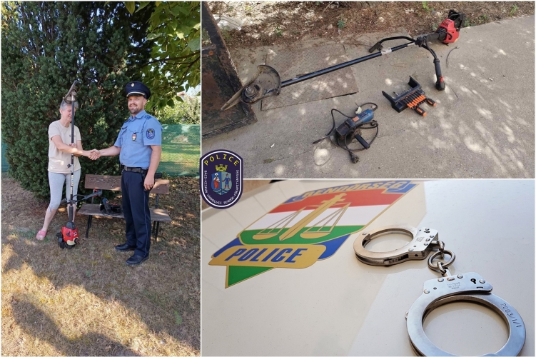 Kiderült, hogy fűkaszát, sarokcsiszolót és szerszámokat próbált meglovasítani a melléképületből, ahova a lakat leverése után jutott be. A járőrök lefoglalták tőle az ellopott holmikat és visszaadták a tulajdonosának. A Kiskőrösi Rendőrkapitányságra előállították az elkövetőt és gyanúsítottként hallgatták ki a lopás miatt. Jelenleg szabadlábon védekezhet, de a nyomozók vizsgálják, hogy elkövetett-e más bűncselekményeket is.