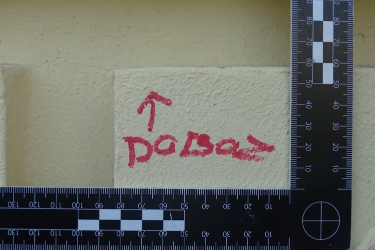 Egy filctollal bele is kezdett a munkába, de közben rájött, hogy ez mégsem jó ötlet, így megpróbálta azt lesatírozni. A fiatal ezt követően a nála lévő energiaitalos dobozokat feltette az épület párkányára, majd azok alá szöveget írt és elhagyta a helyszínt.
