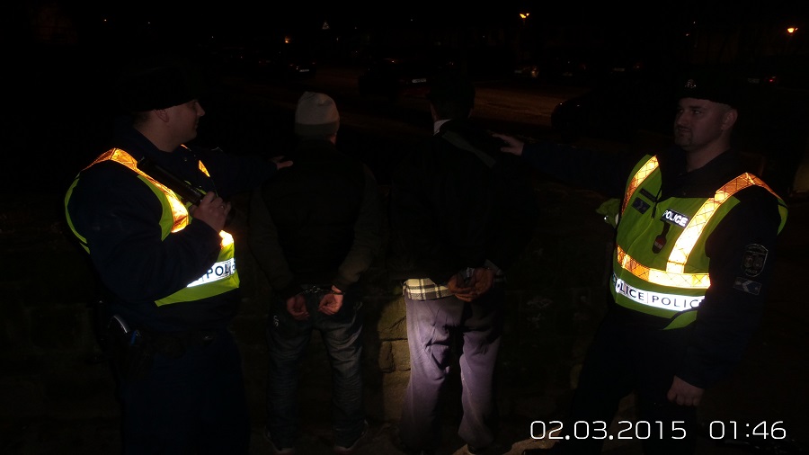 Két gyanúsan viselkedő idegent látott lakásának közelében egy tatabányai asszony 2015. március 2-án éjszaka. Egyikük többször is bement a társasház lépcsőházába, miközben társa a környéket figyelte. Észleléséről tájékoztatta a rendőröket, akik a megadott címre siettek. A helyszín közelében tetten érték a két férfit, akik úgy tettek, mintha a szemetes konténerek tartalma miatt járnák az utcákat. Az egyenruhások igazoltatták őket és ruházatukat is átvizsgálták. A 42 éves O. Józsefnél és a 23 éves F. Mihálynál egy csípőfogót találtak és mindkettejük kesztyűt viselt, mely szintén a rendőrök gyanúját erősítette.