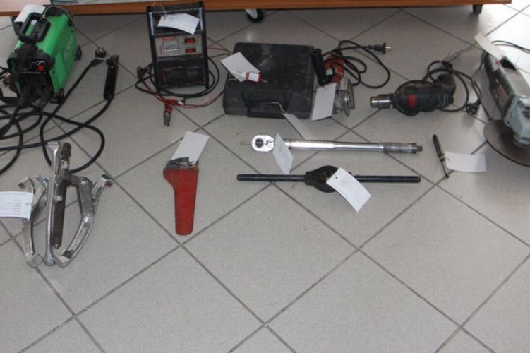 A nyomozók a gyanúsított lakhelyén tartott kutatás során lefoglalták az ellopott szerszámokat.