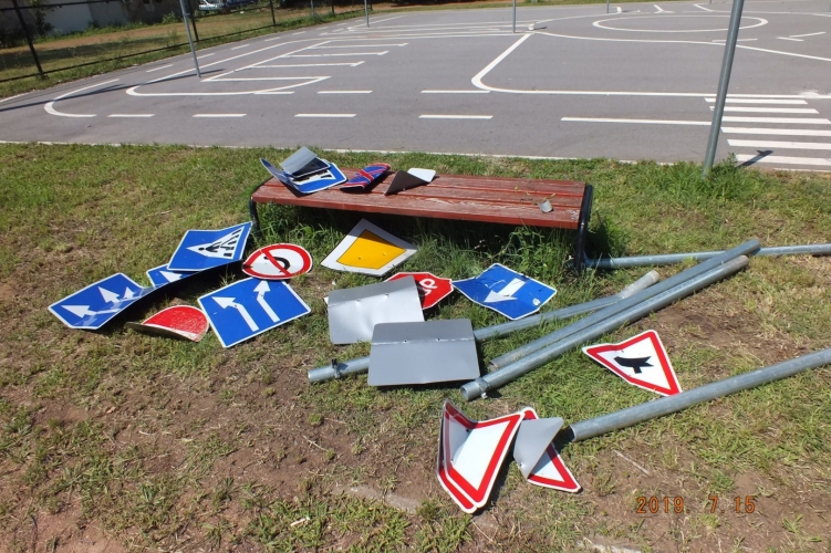 A rendőrségre 2019. július 15-én a reggeli órákban érkezett bejelentés, mely szerint Nyíregyházán, az egyik általános iskola mellett lévő KRESZ-tanpályán több kihelyezett közúti jelzőtáblát a tartóoszlopairól lecsavaroztak, és megrongáltak. A bejelentést követően a rendőrök haladéktalanul megkezdték az adatgyűjtést, melynek eredményeként néhány órán belül beazonosították az elkövetőket. A nyomozás adatai szerint a bűncselekmény elkövetésével két 10 éves nyíregyházi fiú gyanúsítható, akik meghallgatásuk alkalmával nem tudtak magyarázatot adni tettükre. A rendőrök egyikük lakóhelyén a jelzőtáblákat rögzítő csavarokat megtalálták, és lefoglalták.