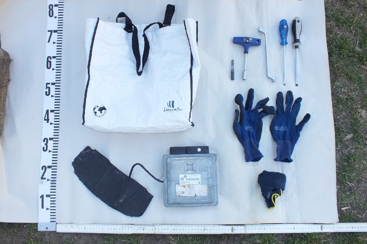 A nyomozók megtalálták a Cs. László és E. Péter által a szemeteskukába dobott fehér szatyrot, amelyben autómotor-vezérlő számítógép, zártörő eszköz, kesztyű és szerszámok voltak, továbbá Cs. Lászlónál tartott házkutatás során lefoglalták a bűncselekmény elkövetéséhez használt két gépjárművet és előkerült az egyik gépjárműből egy mobilblokkoló készülék is.