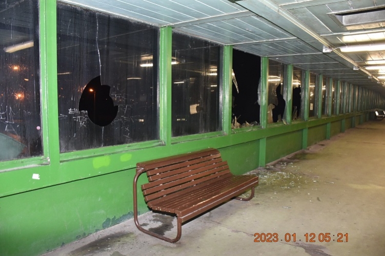 Hajnalban érkezett a bejelentés a rendőrségre, hogy a tatabányai vasútállomás felüljárójának üvegeit betörték. Négy ablaküveget és egy plexit rongált meg a tettes január 12-én, aki magának is okozott sérülést. O. Ottót a helyszín közelében fogták el a járőrök. Előállították a Tatabányai Rendőrkapitányságra, ahol a nyomozók gyanúsítottként kihallgatták. A tettes azt mondta, nem emlékszik semmire. Ellene rongálás és garázdaság miatt indult büntetőeljárás.