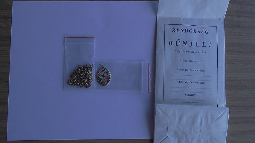 A rendőrségre érkezett egy bejelentés 2016. augusztus 24-én a délutáni órákban arról, hogy az egyik győri üzletben egy férfit tartanak vissza, aki letépte egy idős hölgy nyakláncát. A kiérkező rendőröknek a sértett elmondta, hogy a Baross hídon sétált barátnőivel, amikor hirtelen odalépett hozzá egy férfi, majd szó nélkül kitépte a nyakából az aranyláncát a rajta lévő tűzzománc medállal együtt. Ezután az ismeretlen férfi elfutott. Az esetet több szemtanú is látta, közülük néhányan a tettes után eredtek. Az elkövető menekülés közben a medál nélküli láncot eldobta és üldözői elől az egyik győri üzletbe futott be. A boltba később a sértett is megérkezett, ahol egy ruhaállvány alá dobva megtalálta a nyakából letépett tűzzománc medált is.