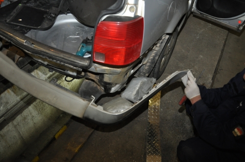 Ennek során a nyomozók a gépkocsiból - a hátsó ülésekbe, a pótkerék helyére, a lökhárító mögé, a csomagtér kárpitja alá, valamint a műszerfal mögé rejtve - 31 csomagban, összesen 27 kilogramm marihuána kábítószert találtak és foglaltak le.