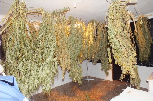 A rendőrök a 42 éves férfinél 2014. december 4-én tartott házkutatás során közel 15 kilogramm THC tartalmú szárított növényi származékot és jelentős mennyiségű készpénzt foglaltak le. Továbbá, két ostorosi pincében egy-egy szakszerűen berendezett marihuána-ültetvényt találtak és közel 20 kilogramm mennyiségű marihuána növényt foglaltak le.