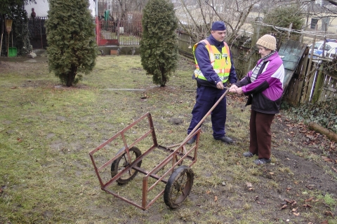 A körzeti megbízott rendőr visszaadta a kézikocsit a sértettnek.