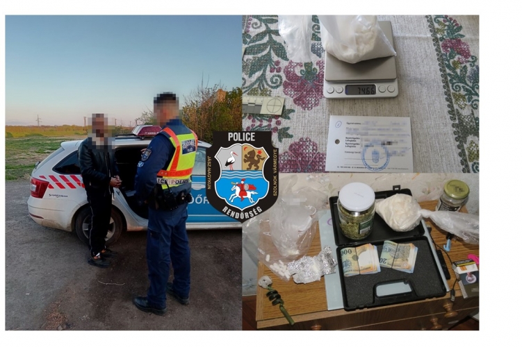 Az Újszászi Rendőrőrs parancsnoka kollégáival együtt 2024. március 19-én délután megjelent egy helybeli ingatlannál. A keresett férfit nem találták, de az udvaron tartózkodó másik férfitól felvilágosítást kértek. Az intézkedés során feltűnt nekik, hogy ruhájának felső zsebéből egy nejlontasak lóg ki. Átvizsgálták a ruházatát, és a tasakban fehér port találtak az egyenruhások, ezt követően a házat is átkutatták. Közel 370 gramm droggyanús anyagot, 1 292 000 forintot, valamint 360 eurót foglaltak le a rendőrök. Az előzetes szakvélemény alapján a fehér por új pszichoaktív anyagnak minősül.
