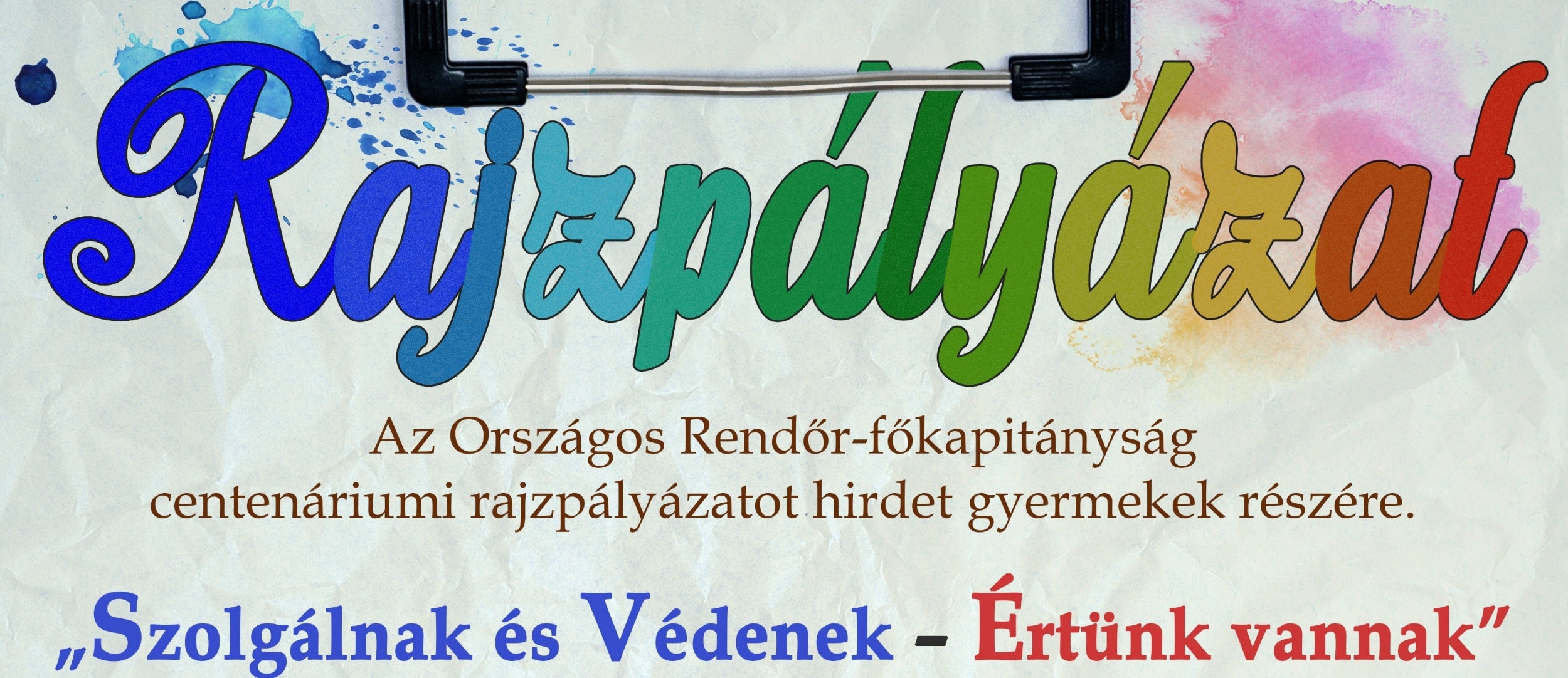 Az Országos Rendőr-főkapitányság centenáriumi rajzkészítő pályázatot hirdet gyermekek részére. Mottó : „Szolgálnak és védenek - értünk vannak!”
