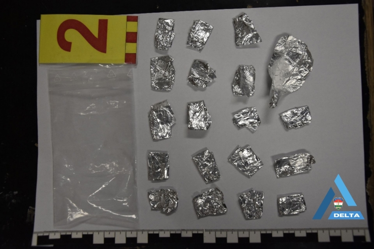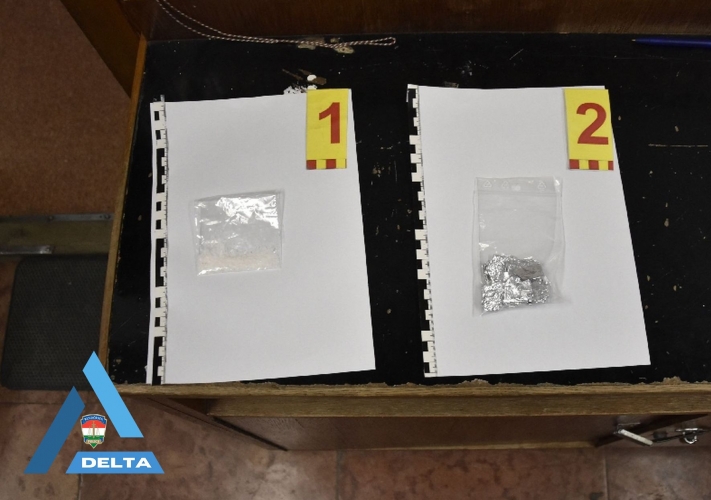 A rendőrök egy 19 éves férfit vettek őrizetbe, majd hallgattak ki, akinek ruházatában 19 pakk fehér, kristályos anyagot, illetve egy önzárós tasakban további droggyanús anyagot találtak, illetve foglaltak le.
