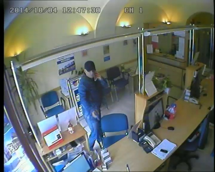 A nyomozás adatai szerint a képen látható személy 2014. október 4-én 12 óra 50 perckor a Veszprém, Rákóczi utca 6. szám alatti utazási iroda női alkalmazottait egy fegyverrel, vagy annak utánzatával arra kényszerítette, hogy az üzletben tárolt készpénzt átadják részére. A férfi a pénzzel együtt a helyszínről elmenekült.