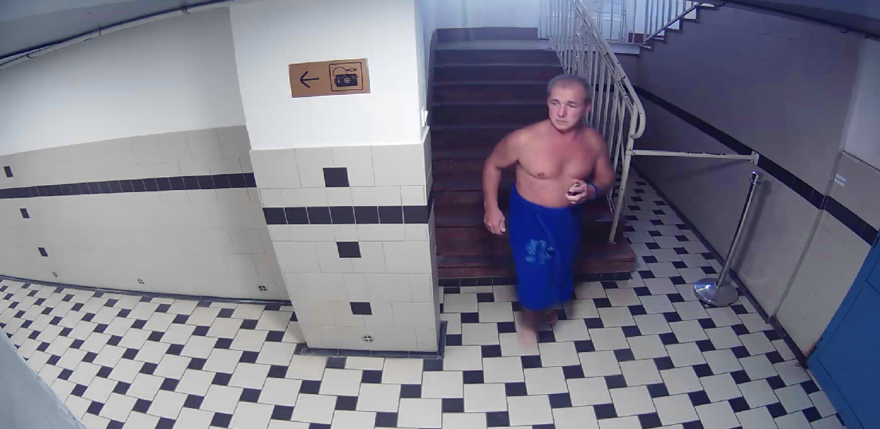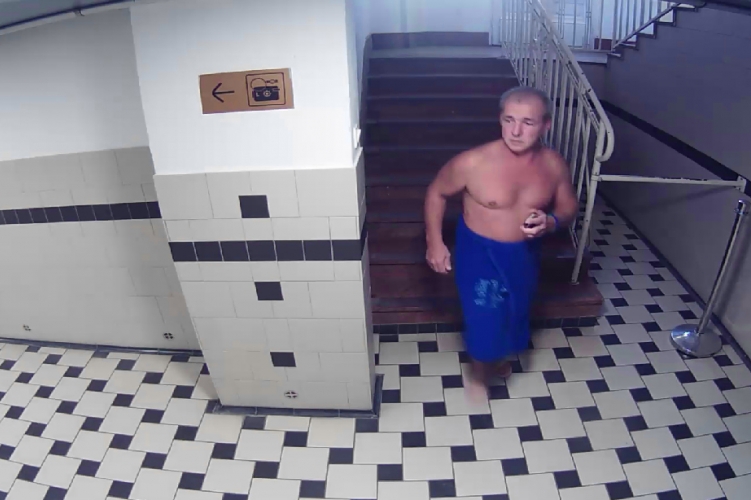 A férfi 50-60 év körüli, 170-180 centiméter magas, a bűncselekmény elkövetésekor egy – a derekára tekert – kék törülközőt viselt.