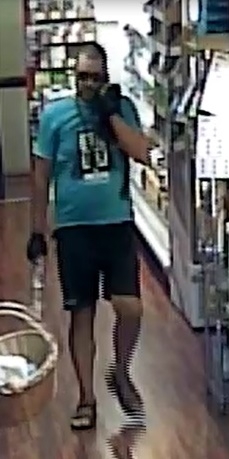 A sértettet követő, a lopás elkövetését segítő személy egy 30-35 év körüli, 190-195 centiméter magas, átlagos testalkatú férfi volt. Haja barna, középtájon erősen kopaszodó. Az elkövetéskor türkizzöld, mintás pólót, fekete rövidnadrágot, fekete biciklis kesztyűt és napszemüveget viselt.