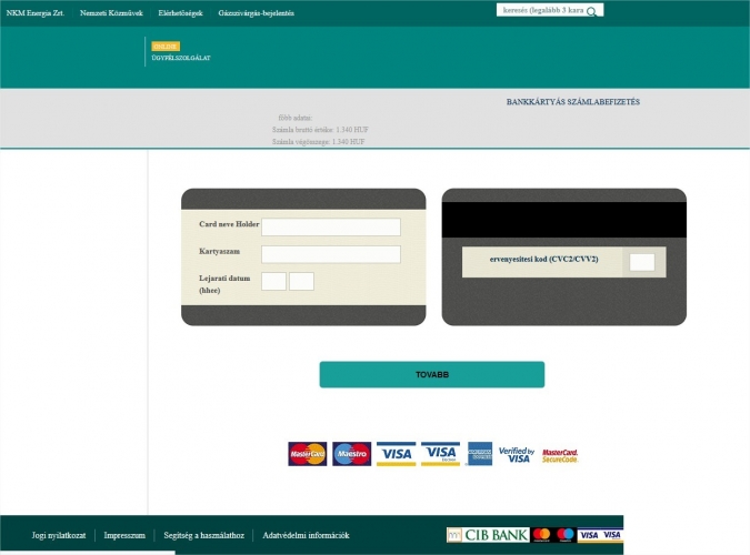 A magyar szolgáltatók többségének weboldalai .hu végződésű tartományban találhatók, amennyiben a hivatkozott oldal nem ilyen végződéssel nyílik meg, ne adja meg személyes- vagy bankkártya-adatait!