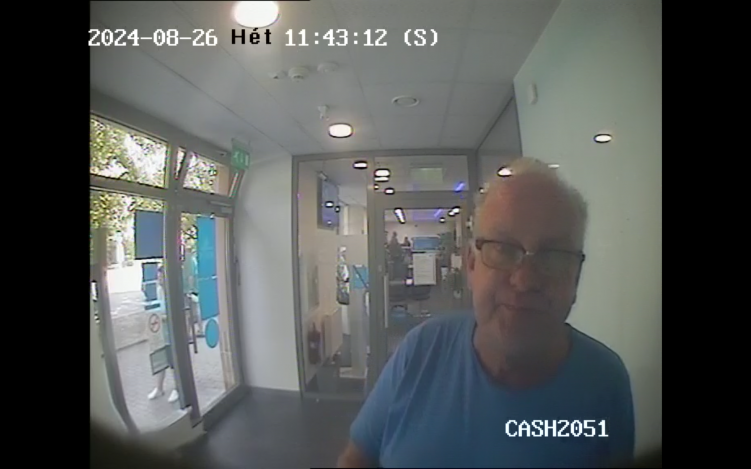 A felvételeken látható férfi augusztus 26-án délelőtt a sértett által egy balatonboglári bankautomata pénzkiadó nyílásában hagyott hatszázezer forintot tulajdonított el.