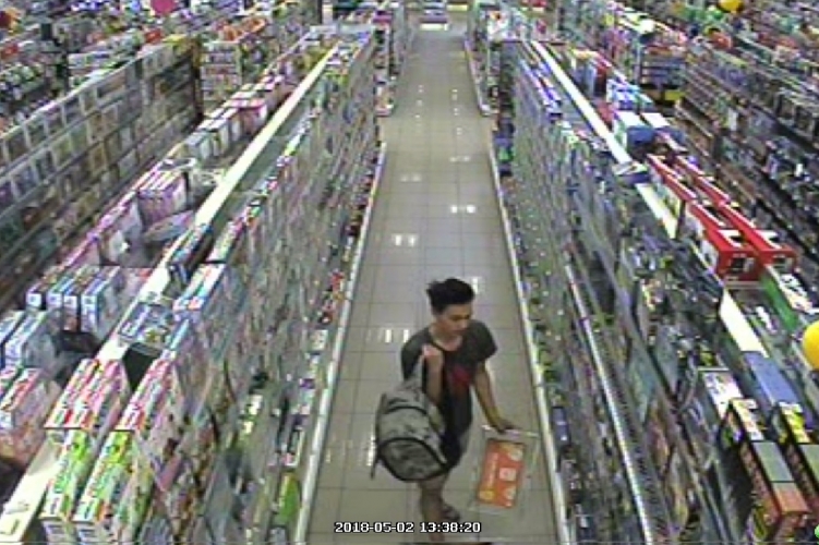 A férfi 20 év körüli, vékony testalkatú, haja barna színű. Az elkövetéskor szürke színű, piros ”Adidas” feliratú pólót, farmer rövidnadrágot, valamint sportcipőt viselt. A lopott parfümöket egy szürke színű, mozaik mintás hátitáskába rejtette el.