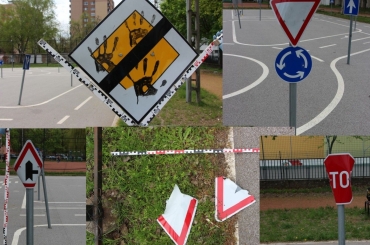 Megrongálták Nyíregyházán, a KRESZ-tanpályán kihelyezett közúti jelzőtáblákat.