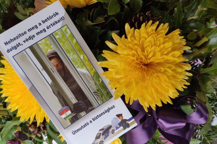 A rendőrök nemcsak a temetőkben és környékén segítik, támogatják a megemlékezés biztonságát, hanem Miskolcon a virágárusok bűnmegelőzést szolgáló szórólapot adnak a csokrok mellé.