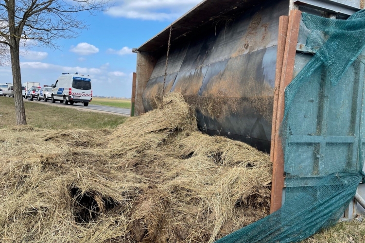 Bejelentés érkezett a rendőrségre 2021. március 24-én, 7 óra 34 perckor arról, hogy a 834-es számú úton, a pápadereskei kereszteződésben egy traktor a hozzá kapcsolt pótkocsival felborult, miután egy őt előző kamionnal érintőlegesen ütközött. A lassú jármű szénát szállított, abból emberek másztak ki és futottak el, továbbá a sofőr is.